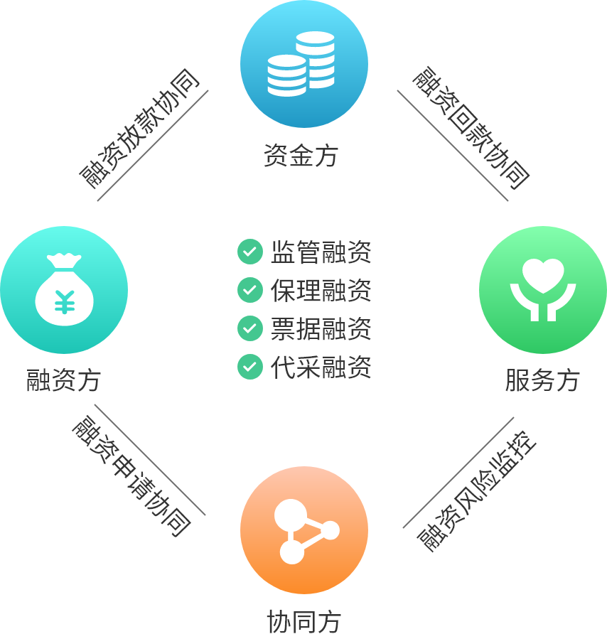 商业银行/保理公司/资管公司/小额贷款等机构—— 为融资方提供资金支持,创新金融业务场景、开发金融产品